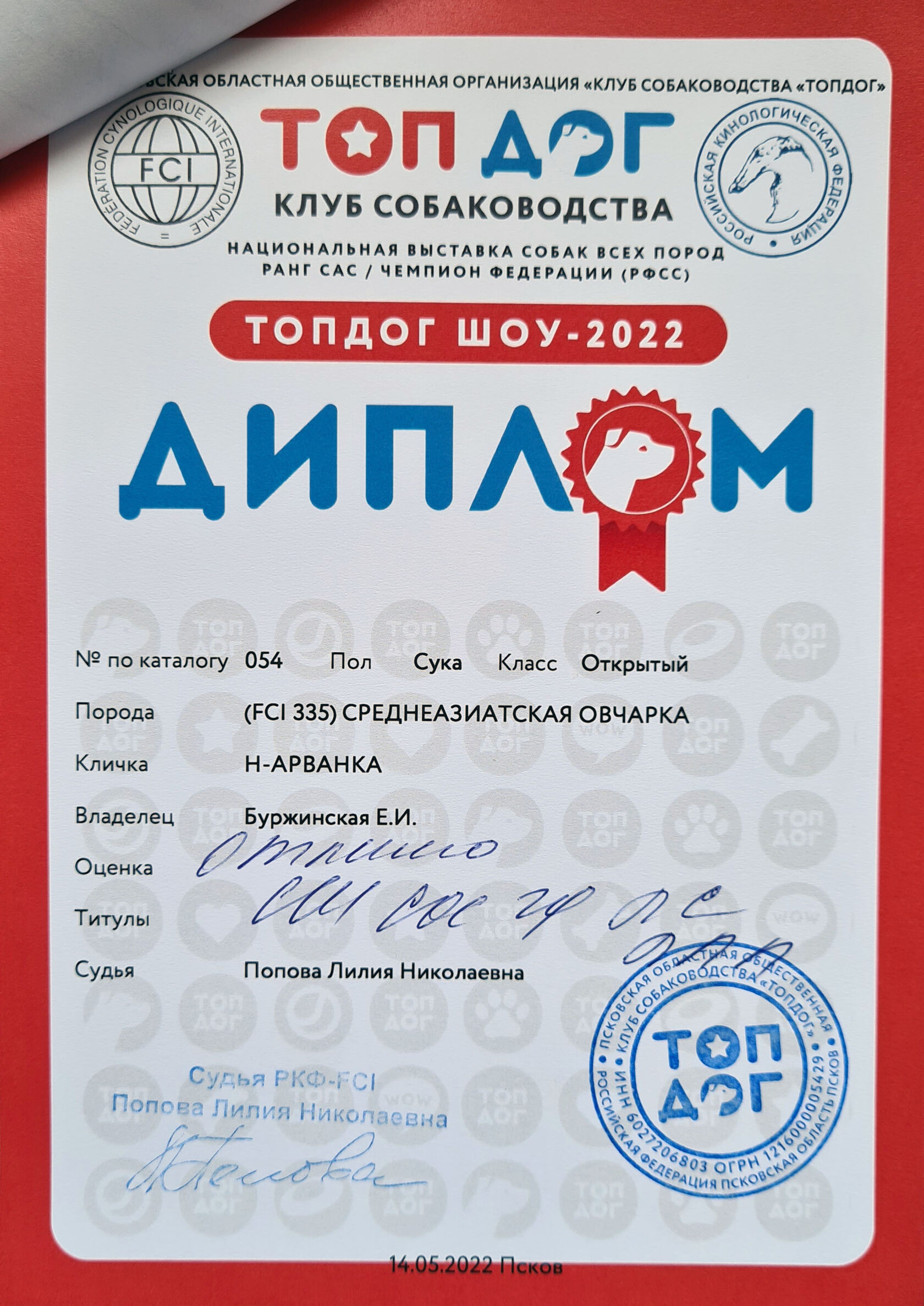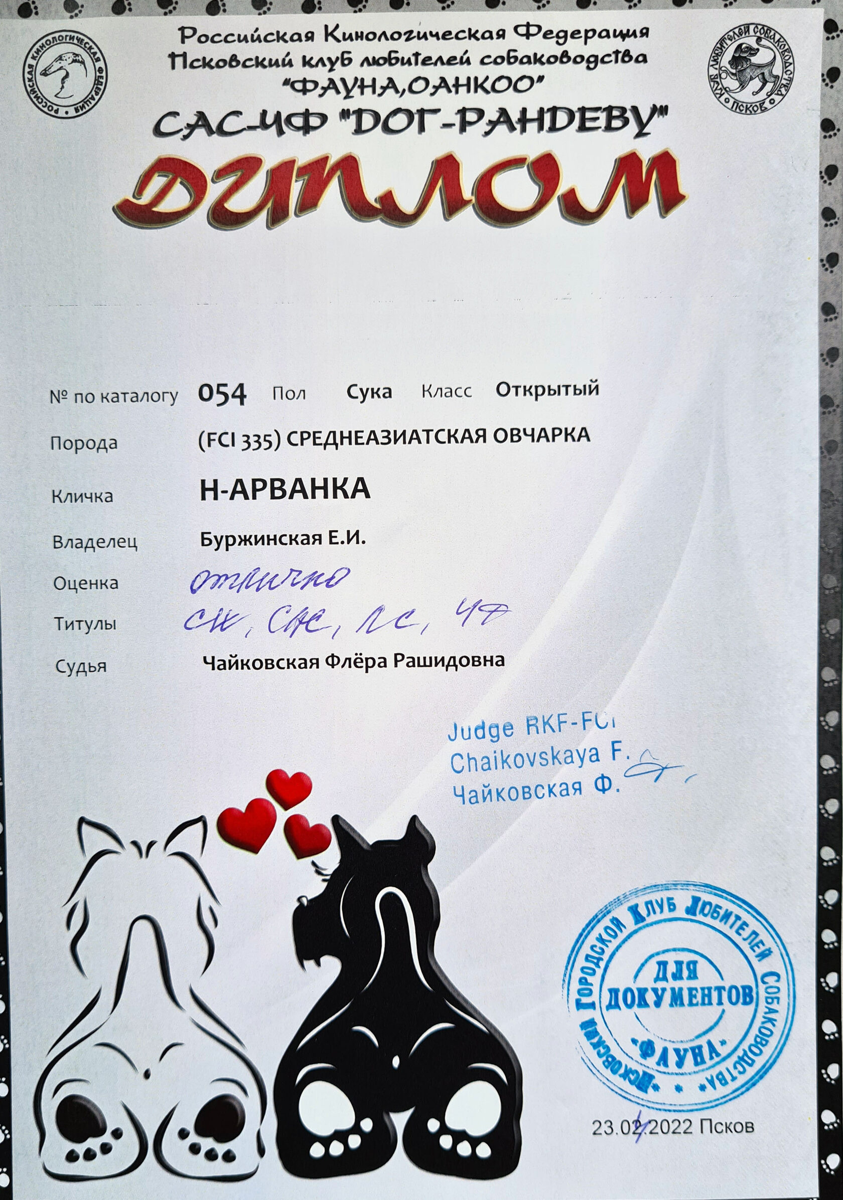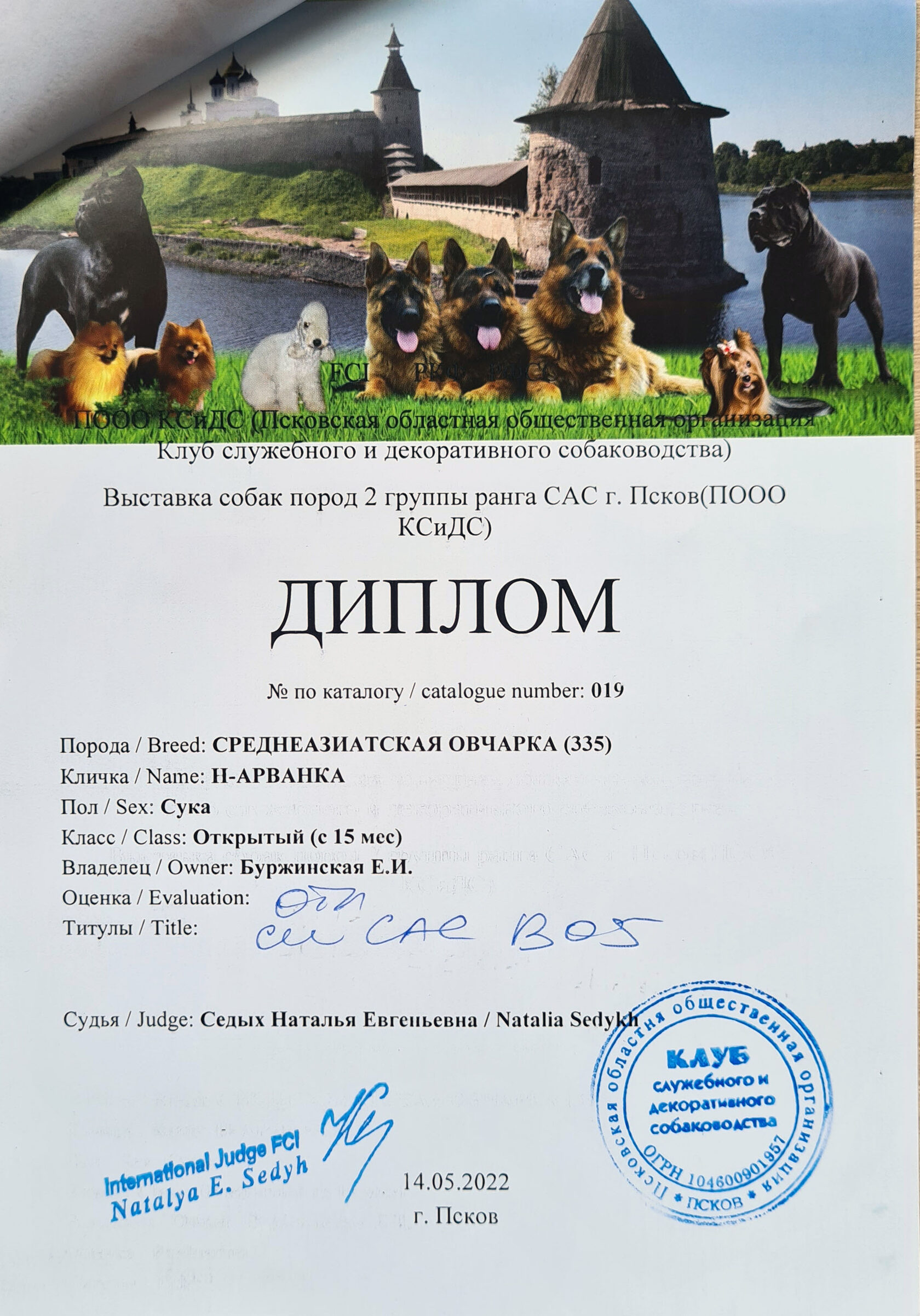 24.06.2022 года у Н-Арванки появилось 3 малыша-крепыша. Черноголовые, белые с чёрным (в будущем крапчатые, как свои родители) парни. Родились с максимально возможным для детёнышей алабая весом.